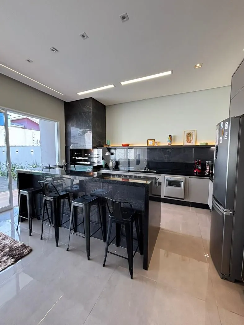 Cozinha moderna integrada ao espaço gourmet, ideal para receber amigos e familiares.